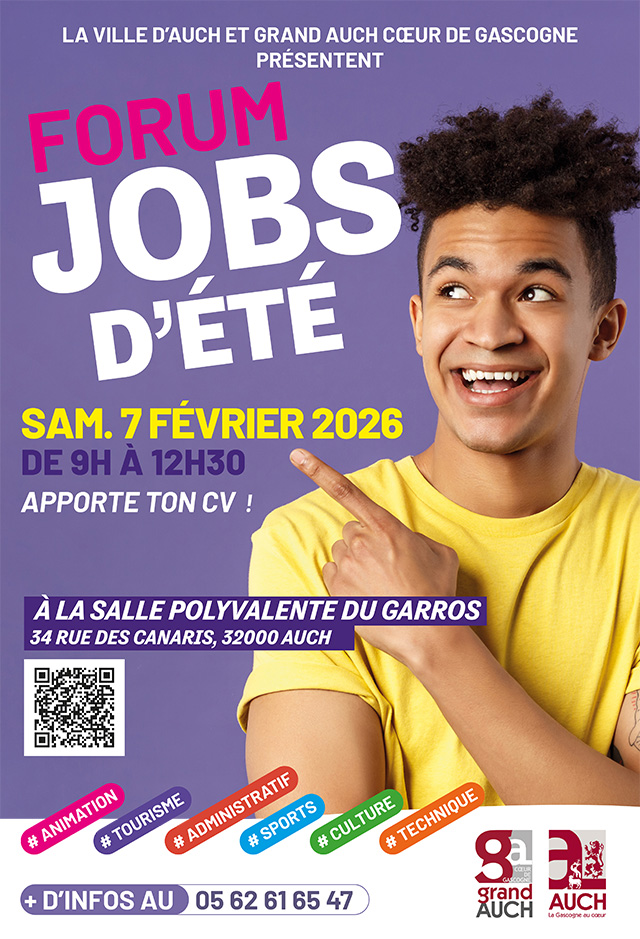 Le 7 février prochain, la Ville d’Auch et Grand Auch Cœur de Gascogne organisent un Forum Jobs d’été pour les plus de 18 ans.