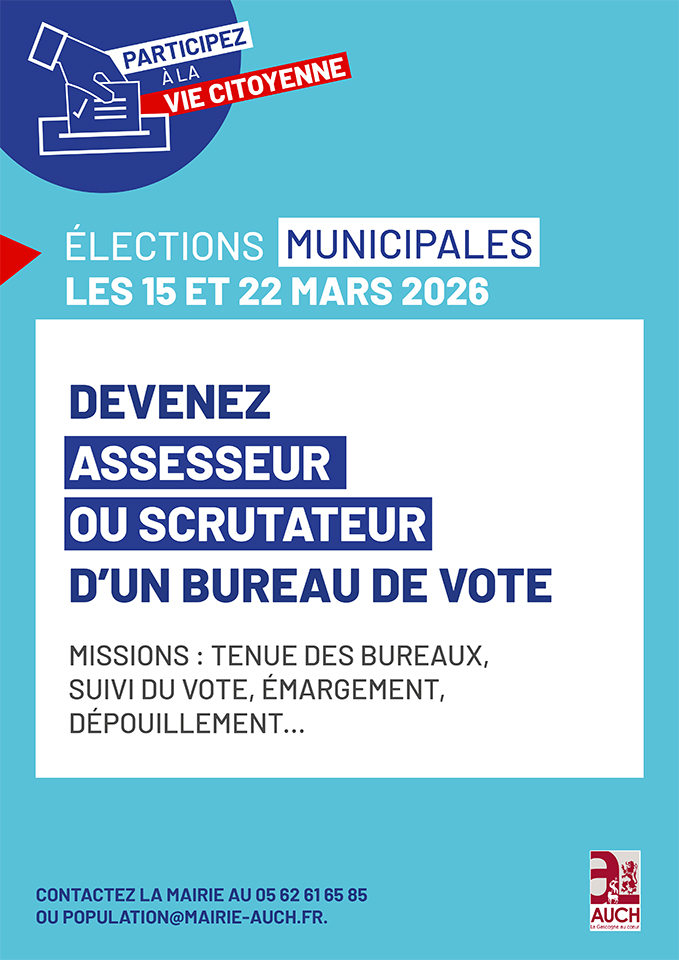 En tant qu’assesseur, vous assisterez le président du bureau. Votre présence sera nécessaire 30mn avant l’ouverture des bureaux de vote et jusqu’à la clôture du scrutin. Vous devrez ensuite suivre le dépouillement des votes et signer les différents documents nécessaires aux opérations électives. En tant que scrutateur, vous participez aux opérations de dénombrement des émargements puis des voix obtenues. Les assesseurs et les scrutateurs doivent être inscrits sur la liste électorale de la commune et ne sont pas rémunérés. Si vous êtes intéressé, contactez le service Population au 05 62 61 66 00